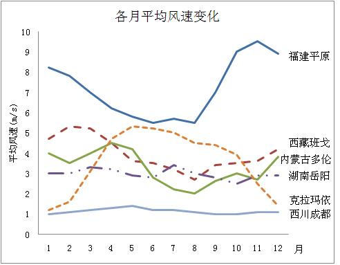 风能资源在地理空间的分布上是不均匀的,在时间上的分布也是不均匀的,在年际、年、日变化上都具有较明显的特征和规律。