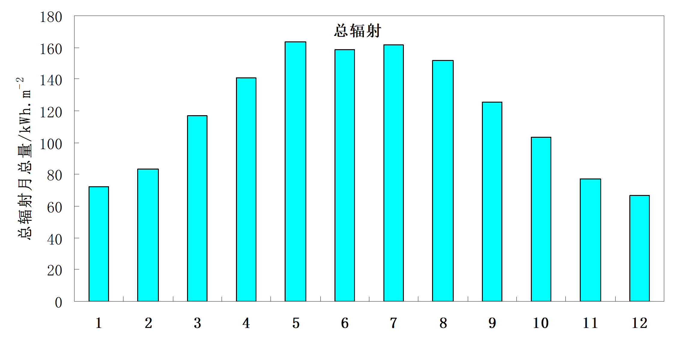 年太阳总辐射的变化规律比太阳直接辐射和散射辐射要复杂些,它是二者变化规律的综合。但在晴朗的日子里,它的强弱主要由太阳直接辐射决定。年变化与直接辐射基本一致,总体来讲是夏季最大,春秋次之、冬季最小。