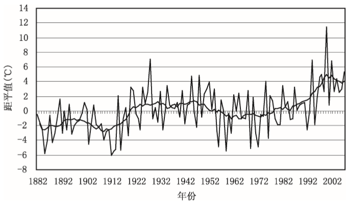 图11.2 长春市5~9月平均气温之和的距平值的逐年变化