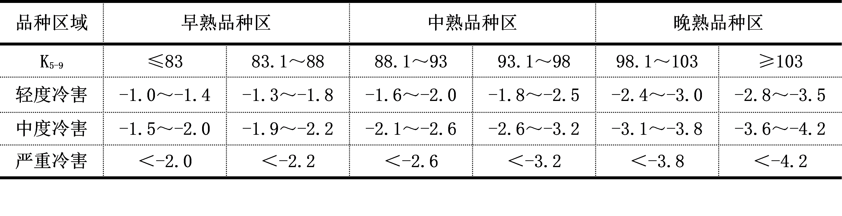 中度冷害:-100>△T10 ≥-120℃.d;