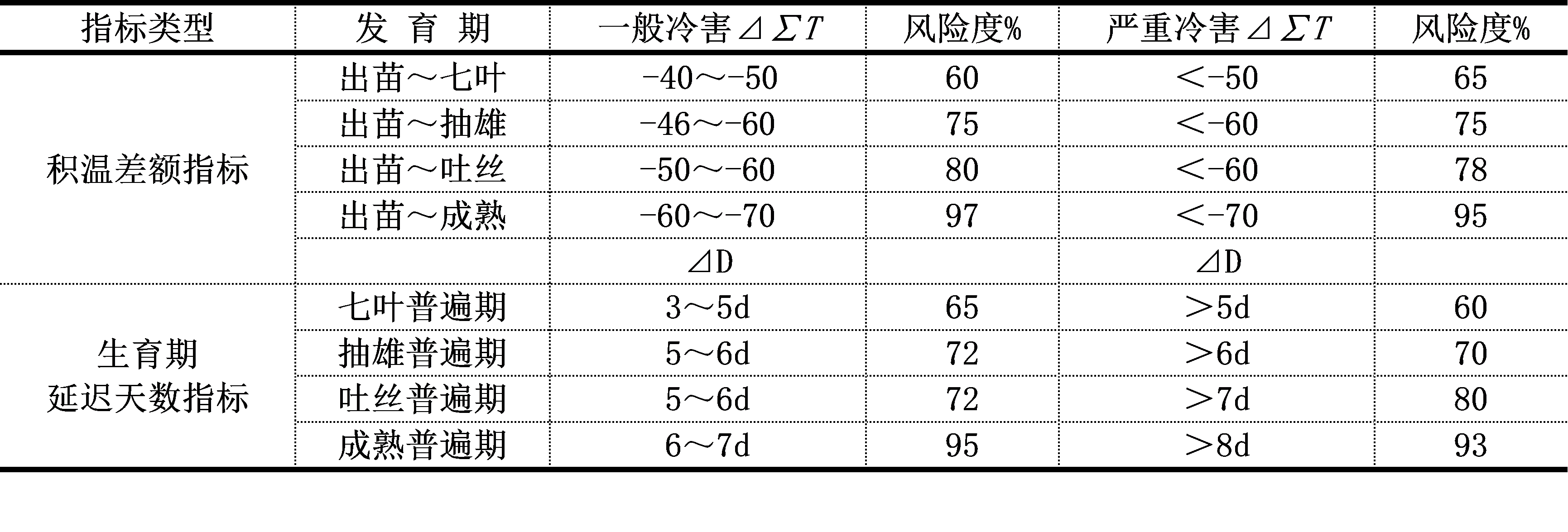 玉米一般冷害指标: