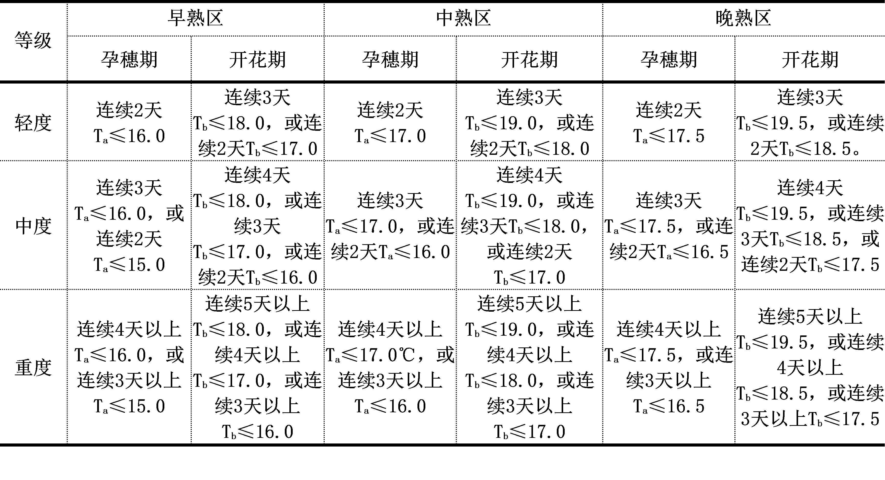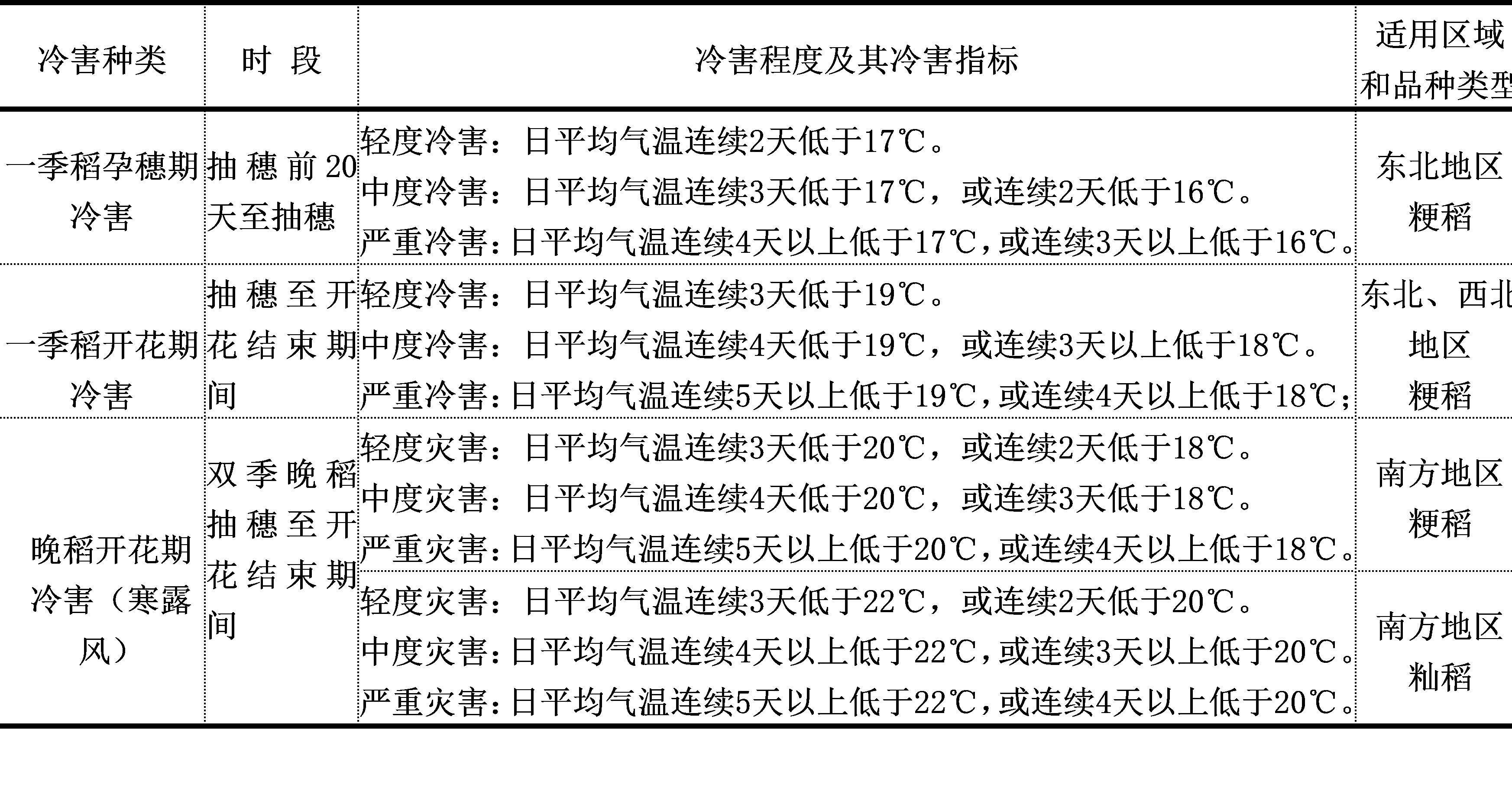 水稻严重冷害指标: