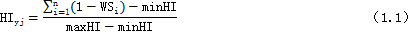 贾慧聪等(2011)基于EPIC(Erosion Productivity Impact Calculator)模型模拟的1961~2005年黄淮海夏播玉米区玉米的生长过程,分5个生育期进行黄淮海夏播玉米区玉米旱灾风险的评价,找出玉米致灾和成灾的高风险生育期。致灾风险反映了玉米不同生育阶段降水供给与需求的平衡关系,而成灾风险则是玉米不同生育阶段因遭受旱灾造成的生物量损失大小。采用水分胁迫作为主要因子。水分胁迫的大小和胁迫时间长短共同影响作物受旱程度,在非灌溉条件下,以生长季内受水分胁迫影响的值和天数,构建评价指标HI,即: