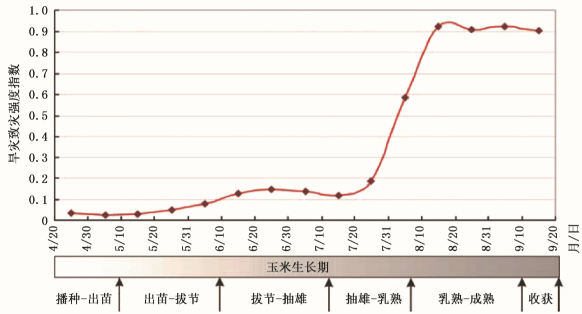 结论是,随着生育进程变化,夏玉米旱灾成灾风险表现为降低升高再降低的趋势,其中,拔节-抽雄期是旱灾成灾的高风险期,要加强防范,播种-出苗期的旱灾成灾风险很低。