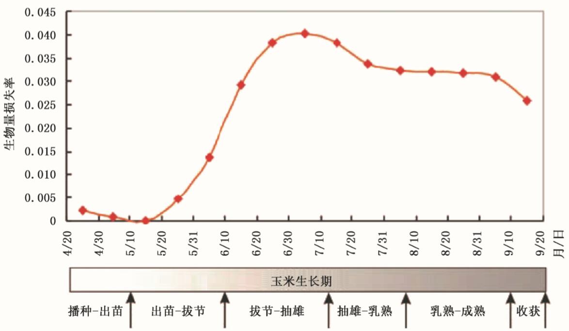 图6.2 黄淮海夏玉米不同生育期生物量损失均值(1966—2005年)