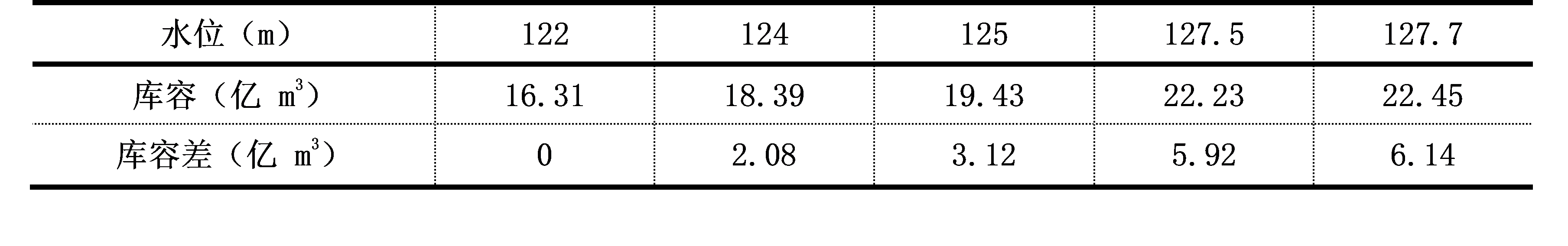 汛限水位到达防洪高水位、设计洪水位、校核洪水位、漫坝水位所需的来水量(即库容差)如下(表7.10):