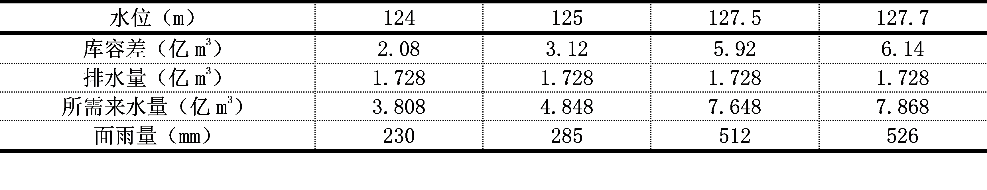 根据漳河流域气候特征,统计流域多年平均降水以及径流量,计算分析流域多年平均径流系数,结合水库水位-库容关系,推算相应的雨量,由此得到表7.3。