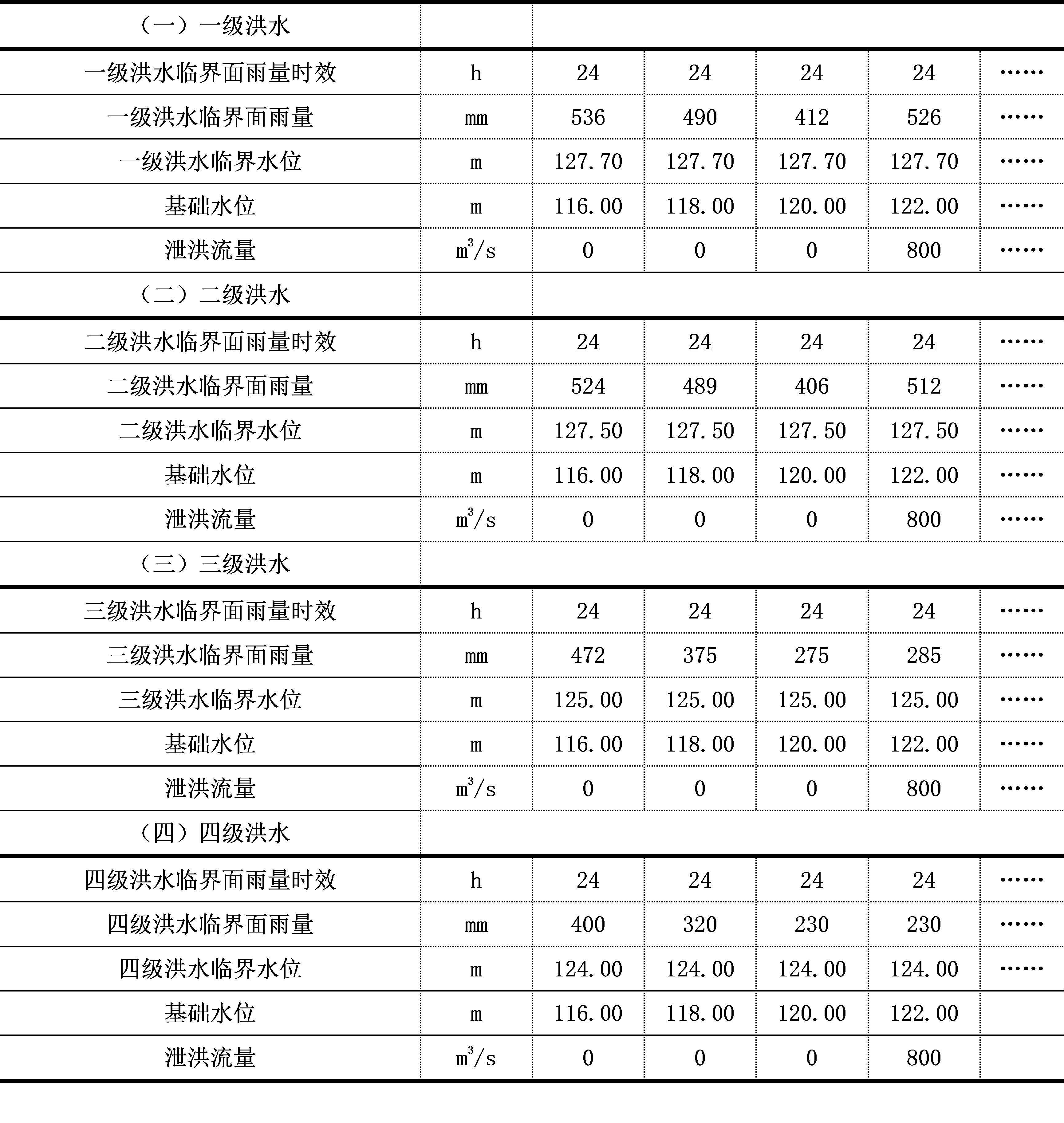 表7.12 不同洪水等级临界面雨量(附录5 F-T3B表)