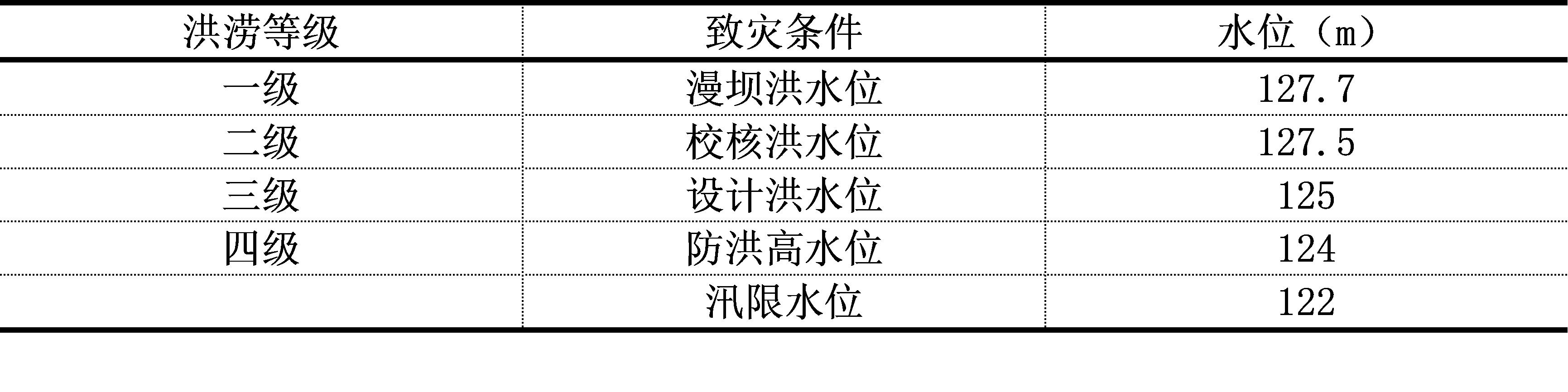 ③ 确定洪水标准所需资料:流域洪水临界水位需要漫坝洪水位(水库大坝高度)、校核洪水位、设计洪水位、防洪高水位、汛限水位等以及相应的库容数据。