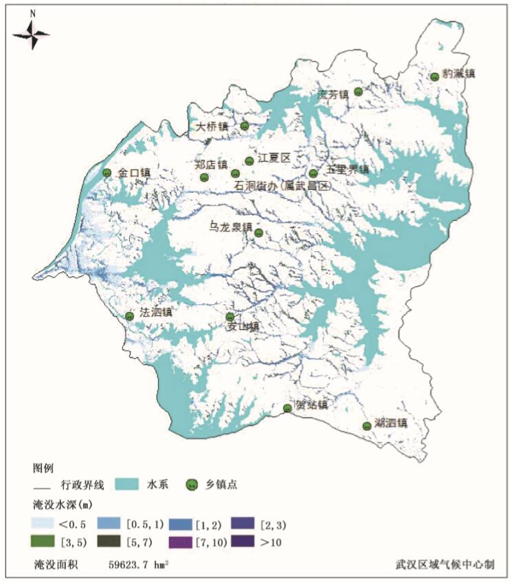 图7.7 武汉市江夏区暴雨洪涝淹没模拟分布图