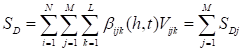 式中,SD为根据洪灾损失率计算的一次洪灾引起的直接经济损失值;SDj为第j类财产的直接经济损失值;βijk为第k种淹没程度下第i个经济分区内第j类财产的损失率;V**ijk为第k种淹没程度下第i经济分区内第j类财产值;N为淹没区人为划分的单元数;M为第i个经济区内的财产种类数;L为淹没程度等级数。