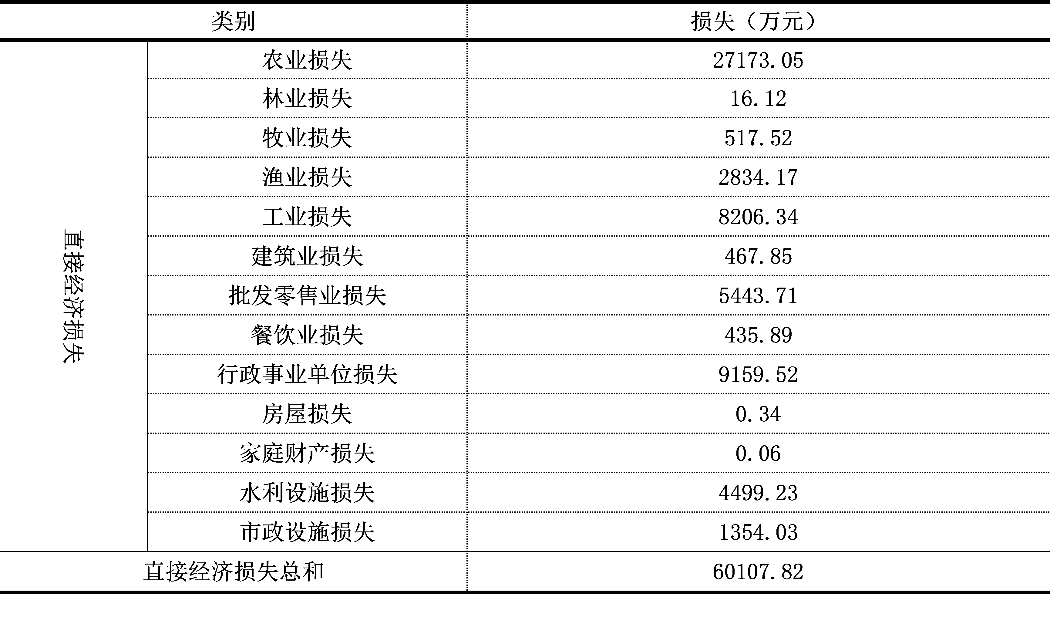 表7.14 2010年7月江夏区洪灾经济损失评估
