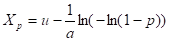 重现期为概率的倒数,a及u是极大值分布参数,计算公式为: