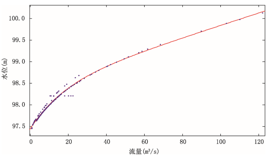 根据收集到的新斜站水位和流量观测资料,建立了曹水流域水位和流量之间的关系曲线(图8.6),其关系式为: