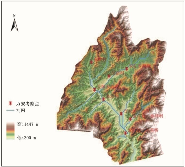 图8.10 安福口溪流域考察范围和考察点分布图