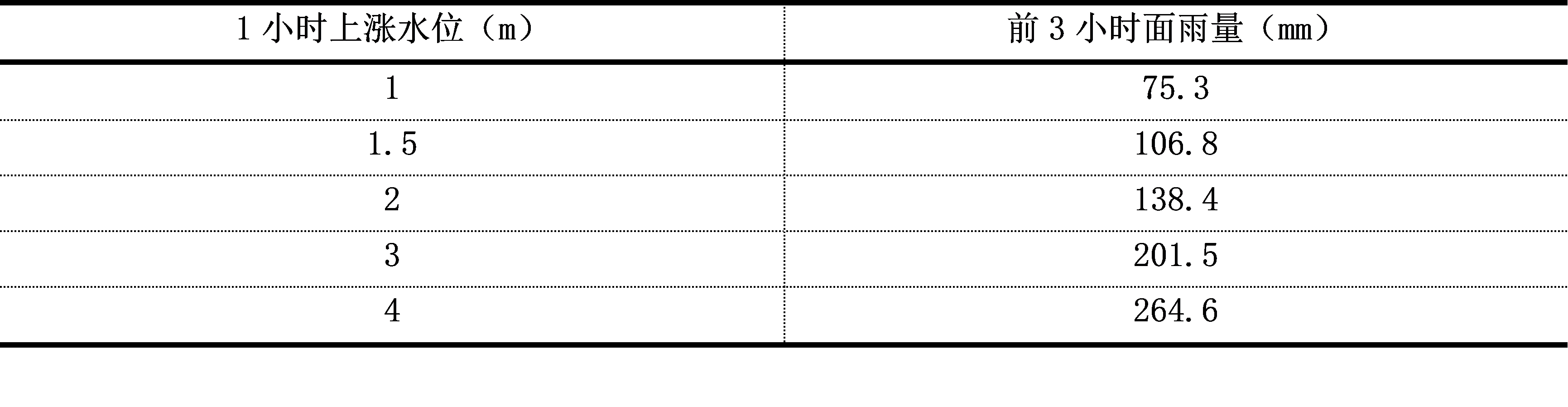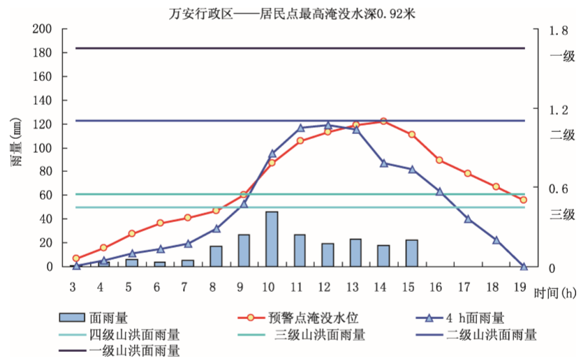 一级:前3h面雨量≥260mm,1h水位上涨4m以上。
