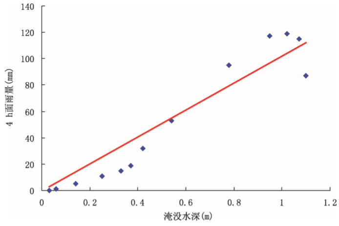 式中y为安福口溪流域4h累计面雨量,x为预警点实际离地淹没水深(图8.13)。