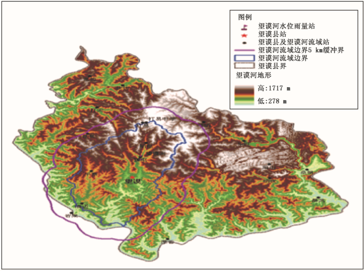 望谟河位于贵州南缘的望谟县境内,地处贵州高原向广西丘陵过渡的斜坡地带,地势北高南低,最高点海拔高度1718m,最低点海拔高度275m,平均海拔868m。望谟河属珠江流域北盘江水系,全长73.6km、流域面积557km²、河流落差1211m。望谟县城区位于河流的中段,县城以上流域面积为194.8 km²(图8.2)。