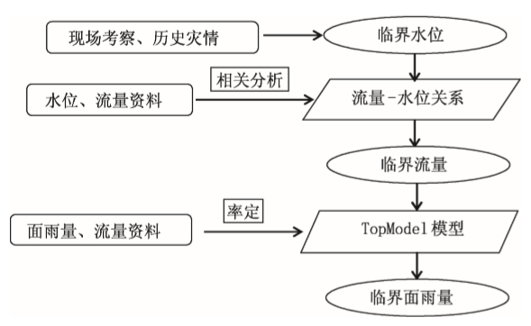 图8.7 水动力模型法确定临界雨量的流程图