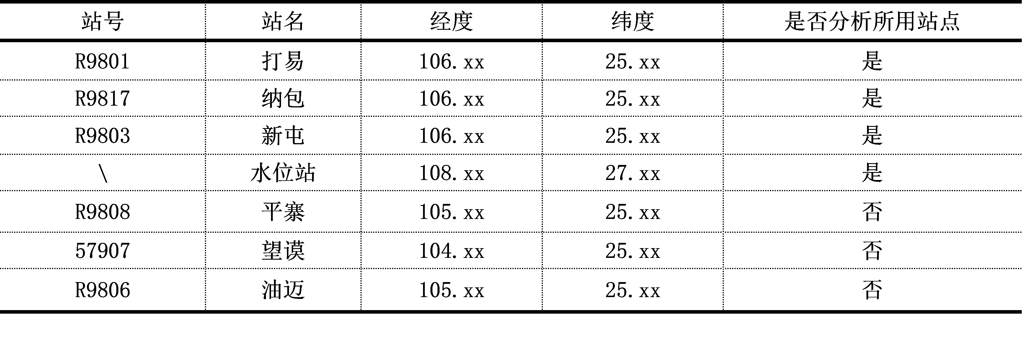 由于分析的是水位站的水位资料,故仅取水位站上游的站点作为分析的对象,包括打易、纳包、新屯和水位站,共4个。