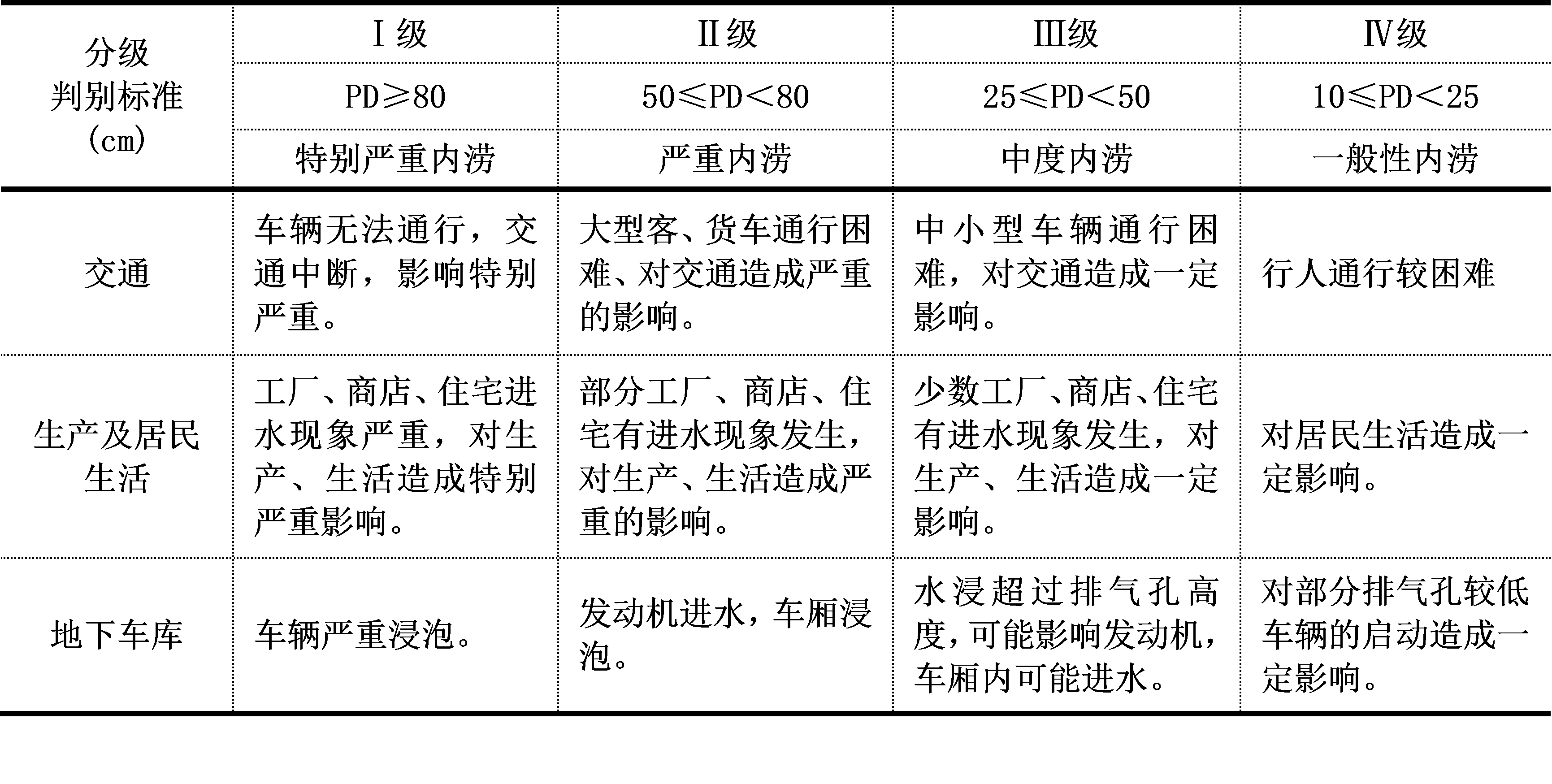 表9.7 城市内涝等级标准及对不同承灾体的影响
